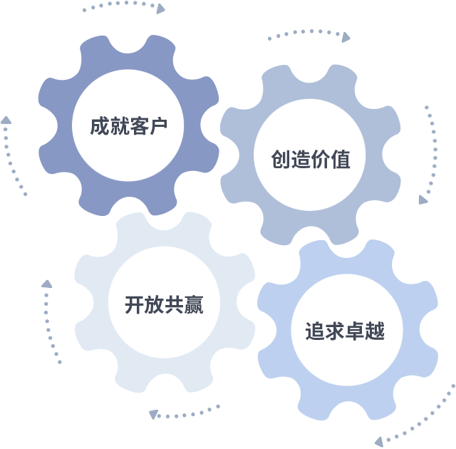 成就客户是一切决策的出发点,创造价值是衡量所有工作的标准,追求卓越是XBET星投做事做人的态度,开放共赢是XBET星投的格局也是最终的结果。价值观的齿轮环环相扣,推动着组织里的每个人不断向前。